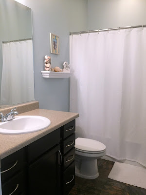 It's a cold, cloudy, snuggly kind of day today so I thought I would finally get around to posting the full makeover I did in one of our bathrooms.