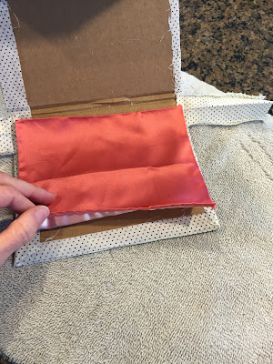 My fabric wasn't a rectangle like the clutch, so I had to do the front section of the satin first, and then the rest.