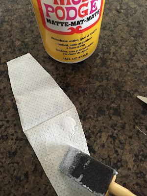 Go around the edges applying Mod Podge and fold the fabric over to give the edges a clean look.