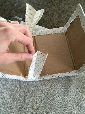 You're basically wrapping the fabric around the cardboard like you are wrapping a present.