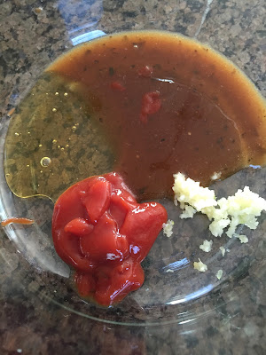 In a bowl mix together honey, minced garlic, ketchup, and balsamic vinaigrette.