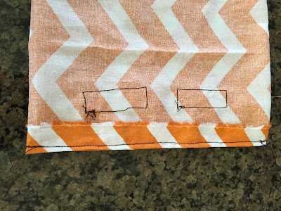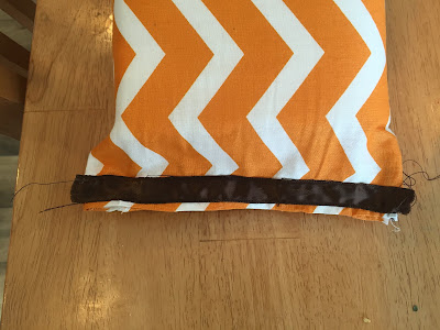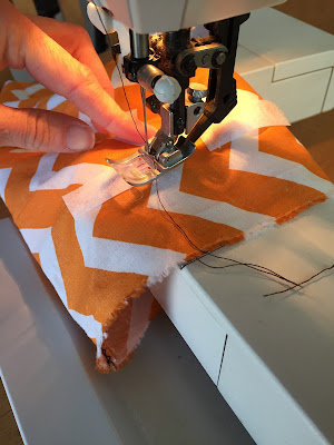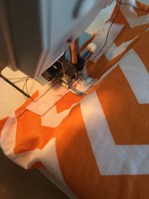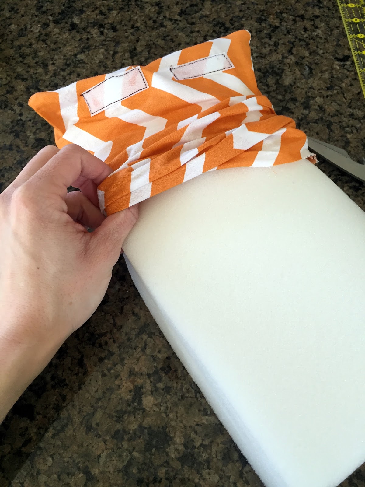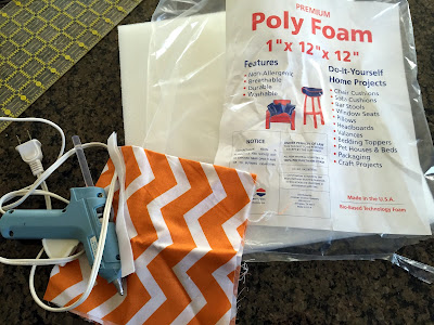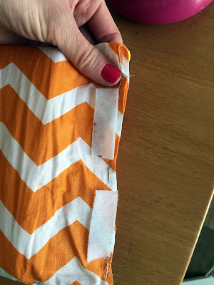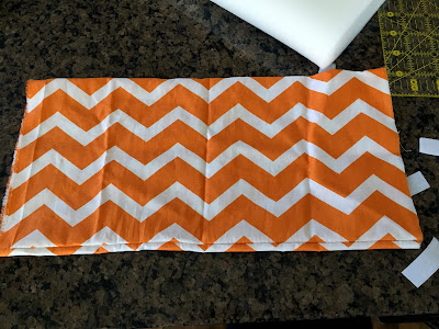 a 14" x 14" piece of orange and white chevron fabric that I had leftover from when I made my son curtains last year