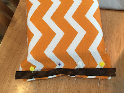I folded the top raw edge in about a 1/4" and pinned it to hold it in place.