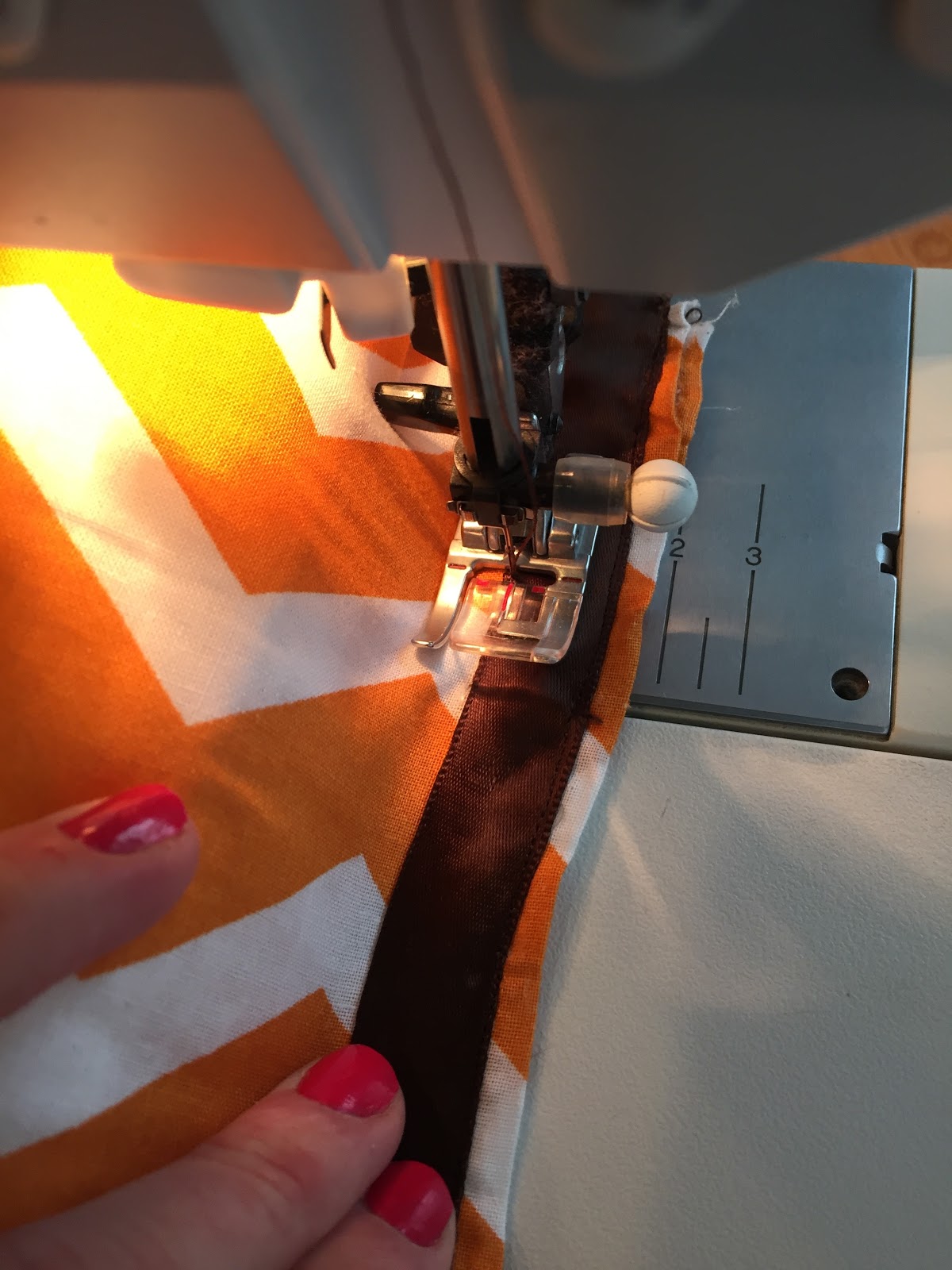 I sewed down the pinned side first with a straight stitch, and then I went back and did a quick zig-zag stitch just to give it extra strength.