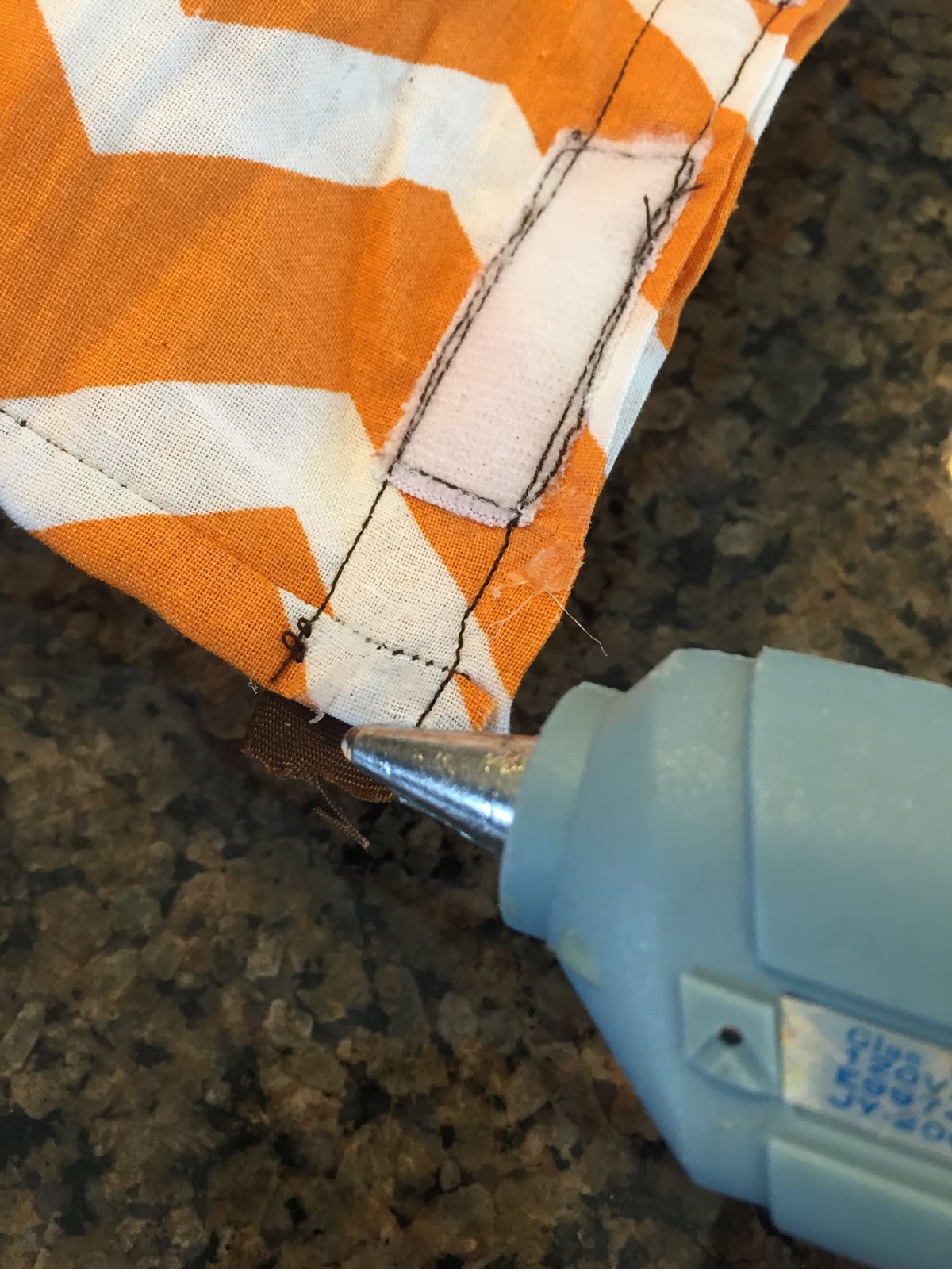 If you want to attach the velcro before you close up this part and not see any stitching, then place the pieces of velcro where you want them, sew them in place, and then sew a straight line across the top to close it.