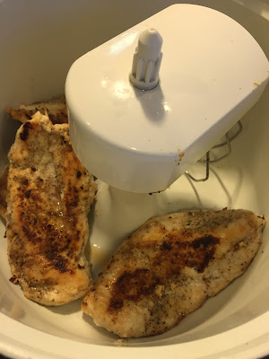 I then transfer the chicken to my stand mixer,